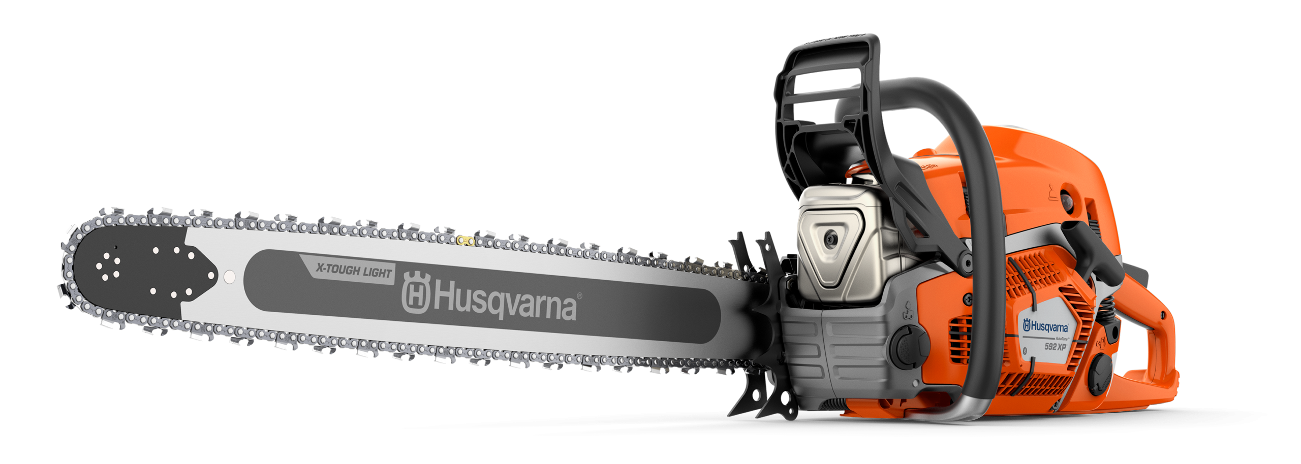 Husqvarna 592 XP® G er en højtydende benzin motorsav med ekstrem kapacitet til tungt skovarbejde. Opvarmede håndtag forbedrer komforten og giver et mere sikkert greb.